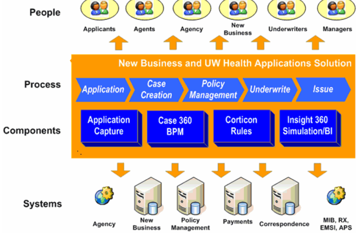 The SoluSoft New Business and Underwriting (NBUW) Health Application Solution is a customizable solution template designed to meet those challenges. Built on world-class Business Process and Content Management software from Global 360 and Business Rules software from Corticon, It fits easily into any insurance environment. It delivers a true end-to-end view of the entire process, and provides much greater control and visibility to all areas of the business. The entire organization can leverage these tools to:
